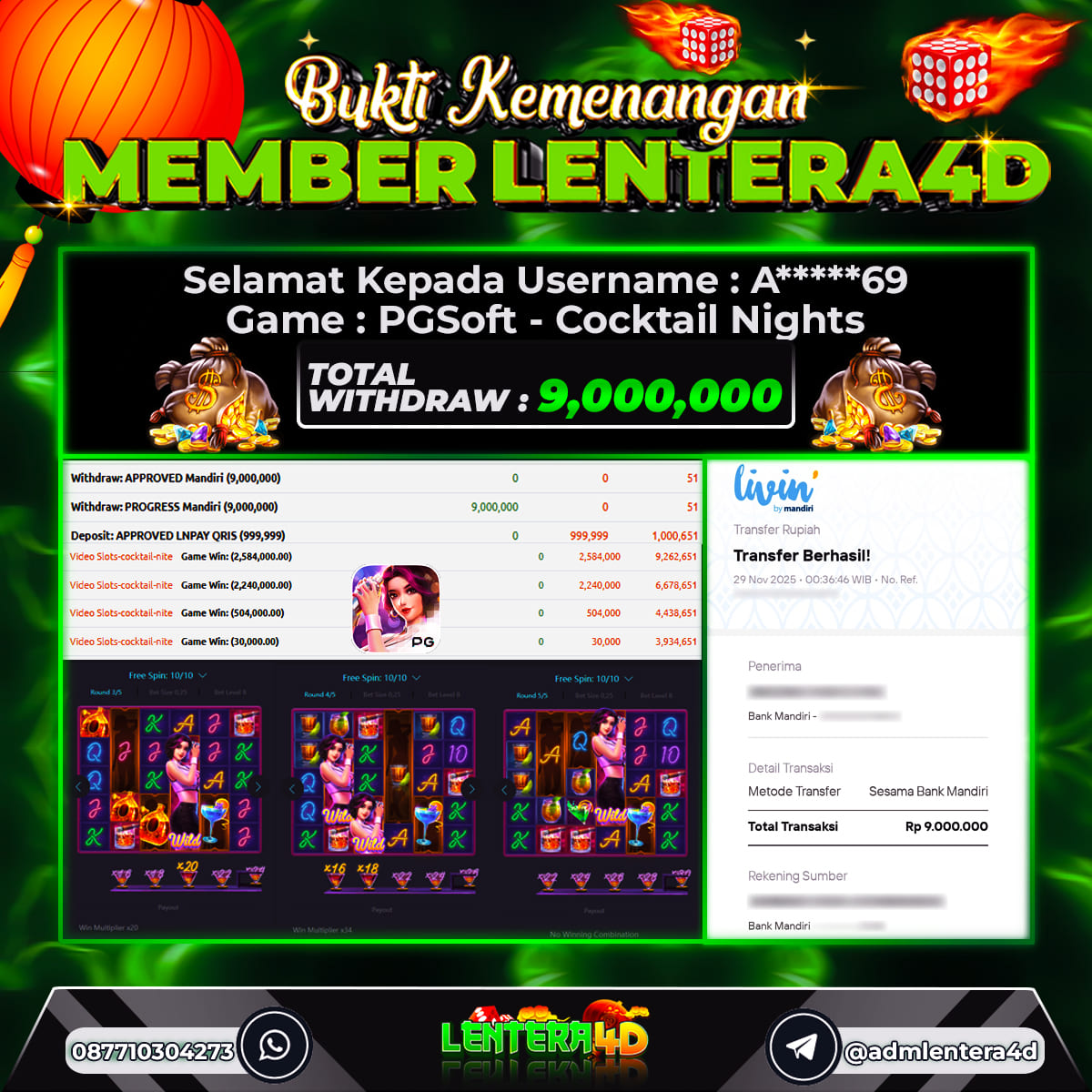 TOTAL KEMENANGAN : Rp. 9.000.000,-