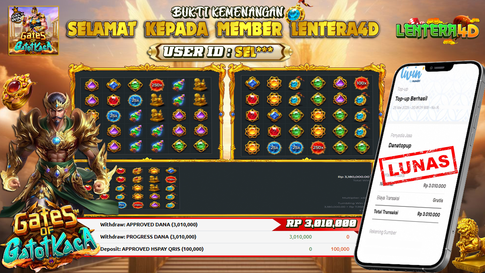 JACKPOT GATE OF GATOT KACA 25 MEI 2025, Jackpot Slot Gacor, Kemenangan Slot, Bukti Kemenangan Slot, Kemenangan Slot PG SOFT, Menang Slot online, Slot Gacor, Situs Aman Terpercaya, WD Berapapun Pasti DI Bayar Tuntas, Maxwin Slot Online.