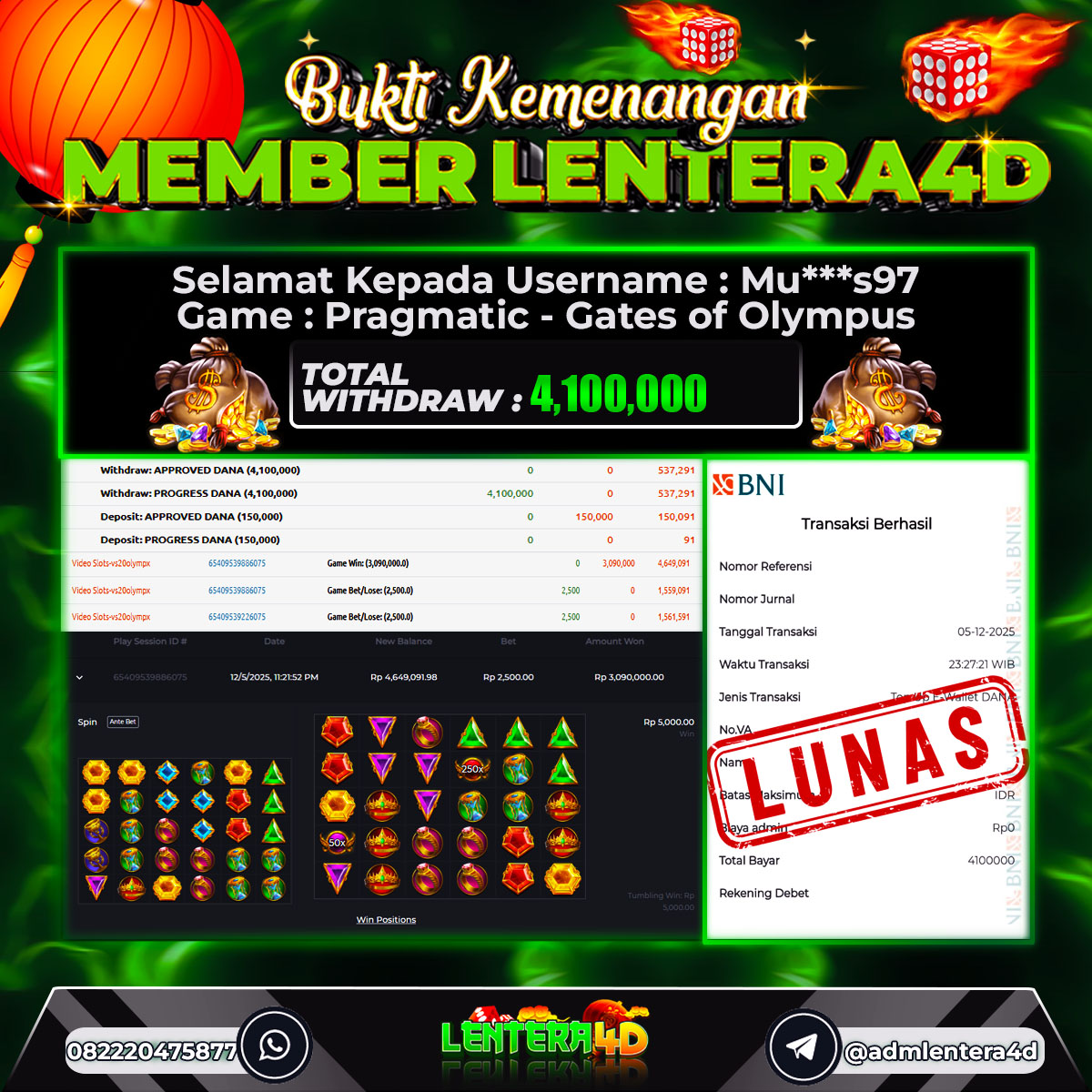 JACKPOT MAIN GATES OF OLYMPUS 05 DESEMBER 2025, Jackpot Slot Gacor, Kemenangan Slot, Bukti Kemenangan Slot, Kemenangan Slot Pragmatic Play, Menang Slot online, Slot Gacor, Situs Aman Terpercaya, WD Berapapun Pasti DI Bayar Tuntas, Maxwin Slot Online.
