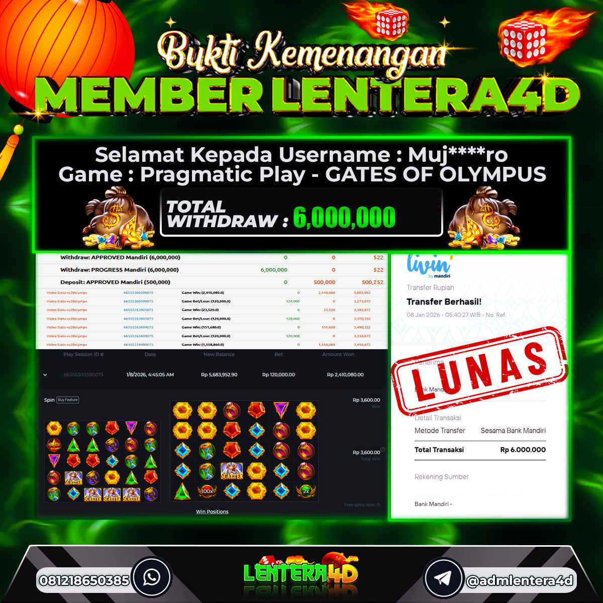Satu lagi Bukti JP dan Pembarayan Sah Dan Dapat Dipertanggung Jawabkan, WD Berapapun Pasti Dibayar Lunas Hanya di Situs LENTERA 4D. Hati Hati Kepada Pihak Pihak Yang Mengatas namakan Pihak LENTERA4D Untuk Melakukan Penipuan.