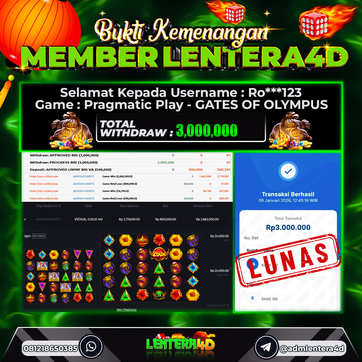 JACKPOT MAIN GATES OF OLYMPUS 09 JANUARI 2026, Jackpot Slot Gacor, Kemenangan Slot, Bukti Kemenangan Slot, Kemenangan Slot Pragmatic Play, Menang Slot online, Slot Gacor, Situs Aman Terpercaya, WD Berapapun Pasti DI Bayar Tuntas, Maxwin Slot Online.