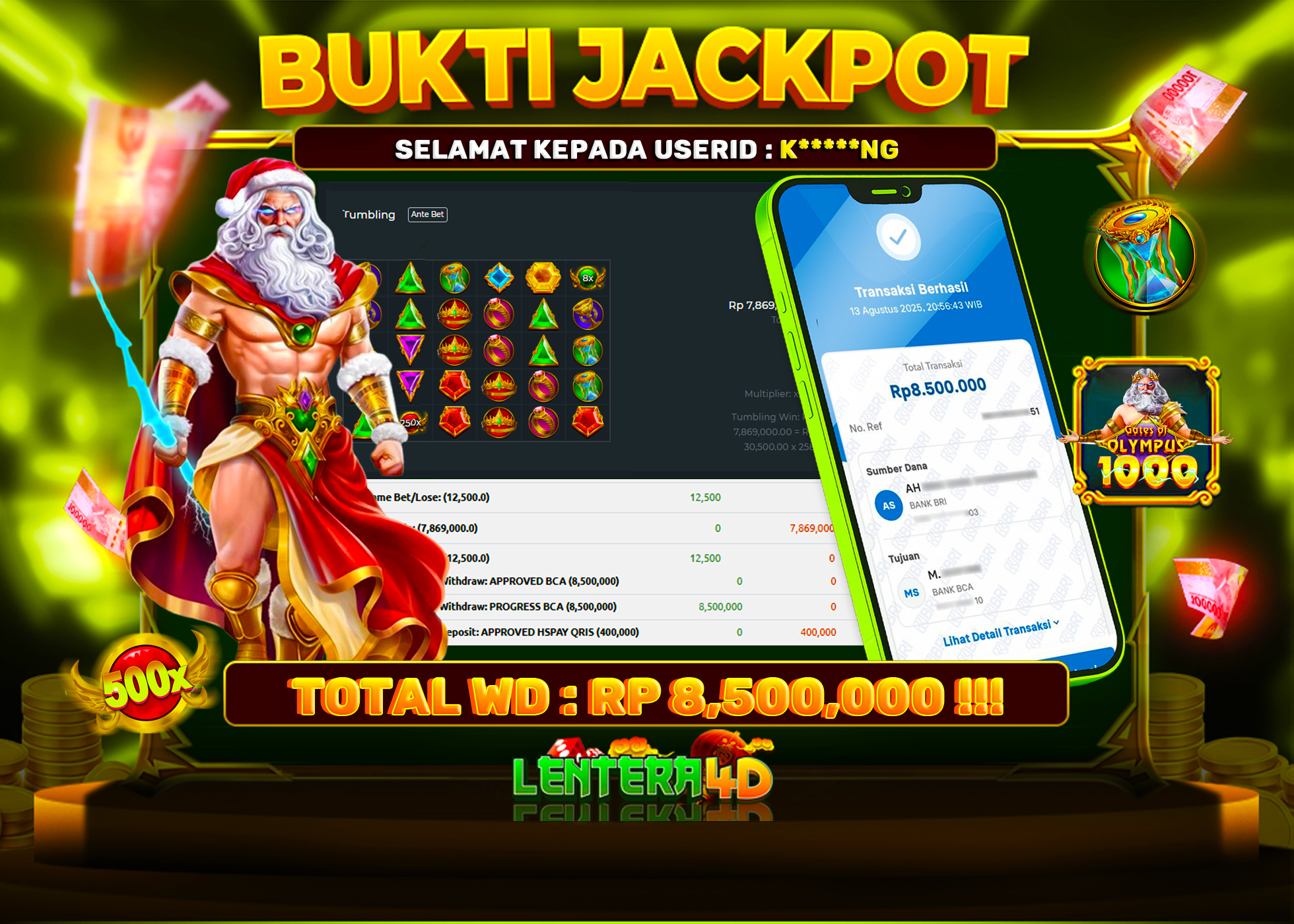 TOTAL KEMENANGAN : Rp. 8.500.000,-