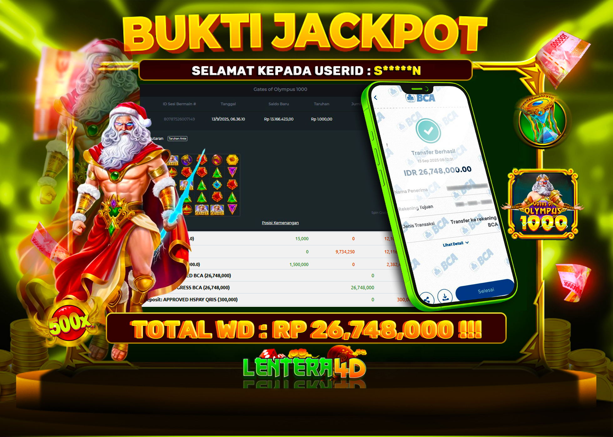 Satu lagi Bukti JP dan Pembarayan Sah Dan Dapat Dipertanggung Jawabkan, WD Berapapun Pasti Dibayar Lunas Hanya di Situs LENTERA 4D. Hati Hati Kepada Pihak Pihak Yang Mengatas namakan Pihak LENTERA4D Untuk Melakukan Penipuan.