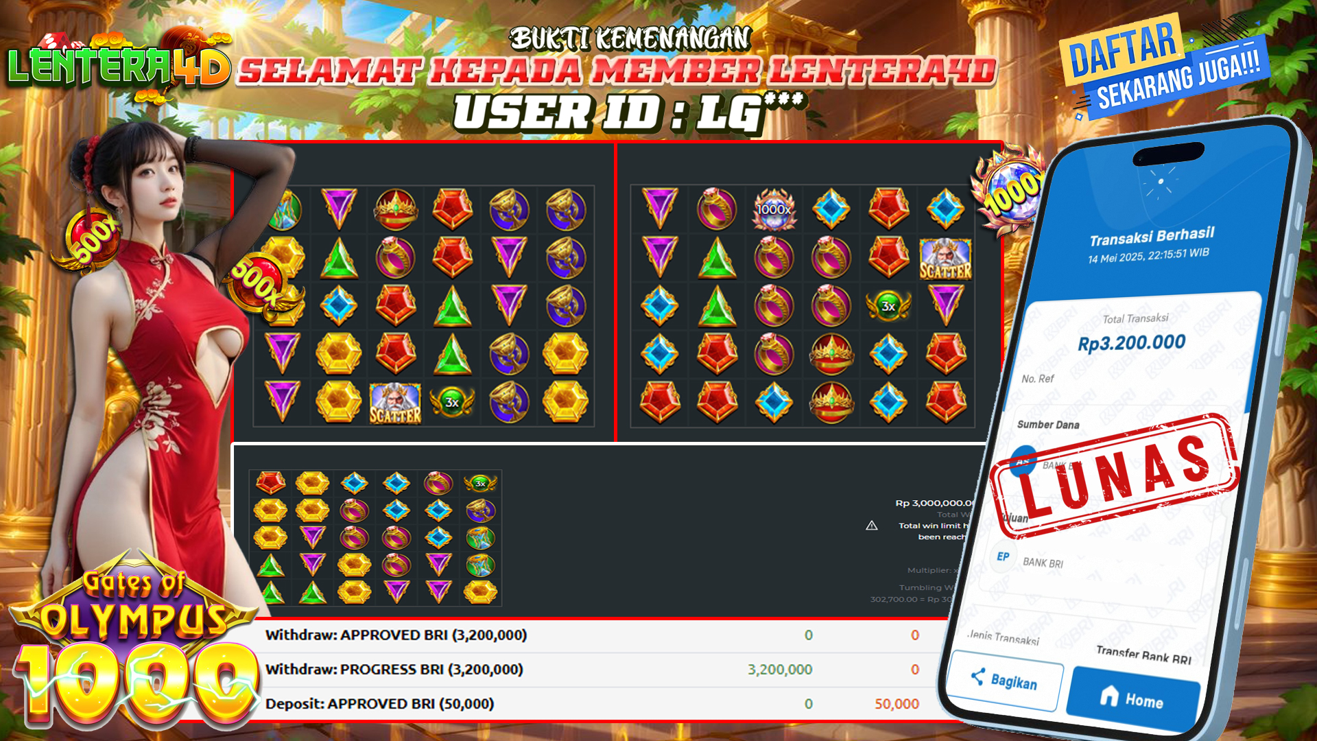 Satu lagi Bukti JP dan Pembarayan Sah Dan Dapat Dipertanggung Jawabkan, WD Berapapun Pasti Dibayar Lunas Hanya di Situs LENTERA 4D. Hati Hati Kepada Pihak Pihak Yang Mengatas namakan Pihak LENTERA4D Untuk Melakukan Penipuan.