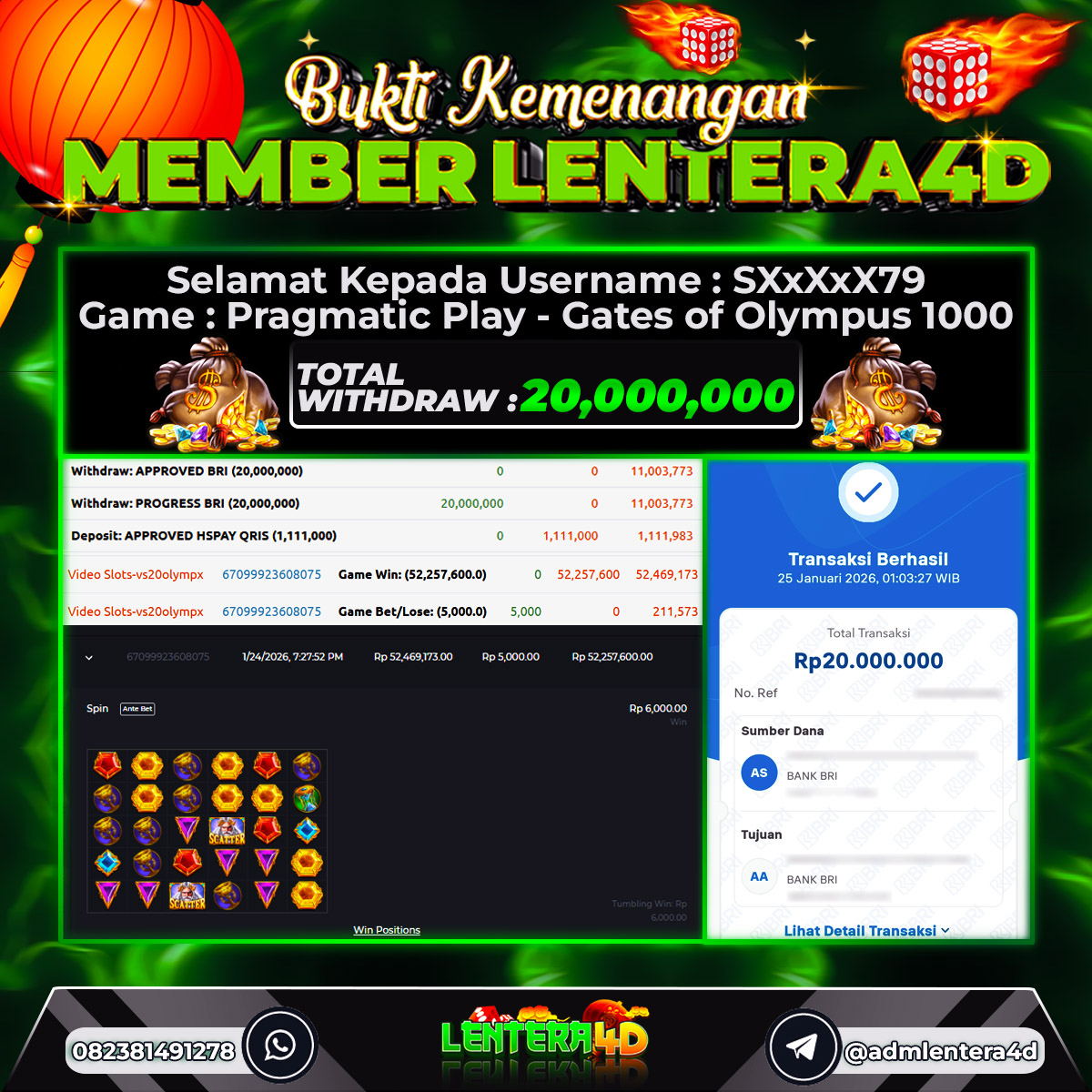 Selamat Kepada Member Yang Berhasil Mendapatkan Jackpot Dipermainan Slot Pragmatic Play Hari Ini, Berikut Bukti SS Jackpot Member Di Situs LENTERA4D