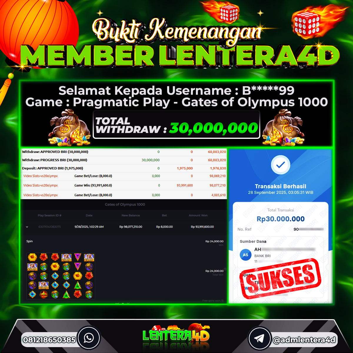 Satu lagi Bukti JP dan Pembarayan Sah Dan Dapat Dipertanggung Jawabkan, WD Berapapun Pasti Dibayar Lunas Hanya di Situs LENTERA 4D. Hati Hati Kepada Pihak Pihak Yang Mengatas namakan Pihak LENTERA4D Untuk Melakukan Penipuan.