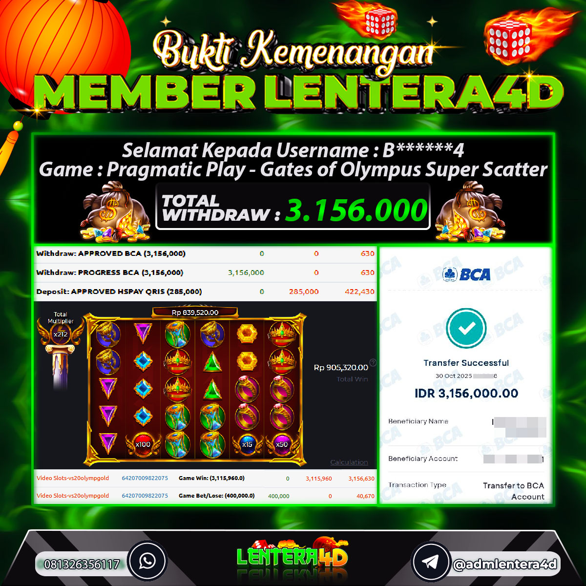 Satu lagi Bukti JP dan Pembarayan Sah Dan Dapat Dipertanggung Jawabkan, WD Berapapun Pasti Dibayar Lunas Hanya di Situs LENTERA 4D. Hati Hati Kepada Pihak Pihak Yang Mengatas namakan Pihak LENTERA4D Untuk Melakukan Penipuan.