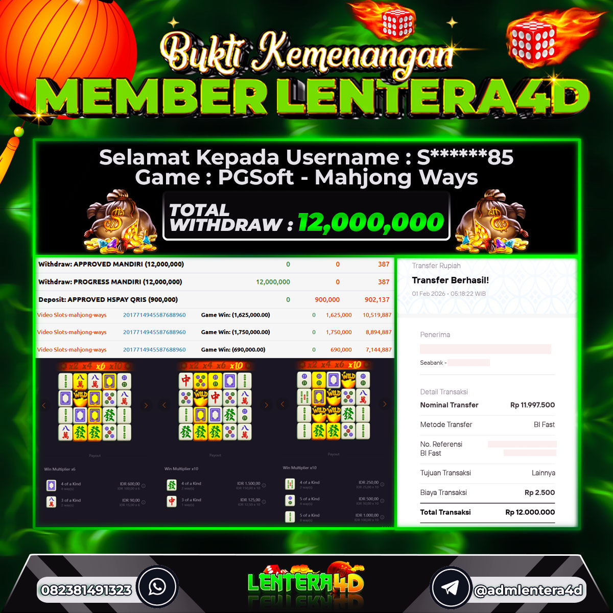 JACKPOT MAIN MAHJONG WAYS 01 FEBRUARY 2026, Jackpot Slot Gacor, Kemenangan Slot, Bukti Kemenangan Slot, Kemenangan Slot PG SOFT, Menang Slot online, Slot Gacor, Situs Aman Terpercaya, WD Berapapun Pasti DI Bayar Tuntas, Maxwin Slot Online.