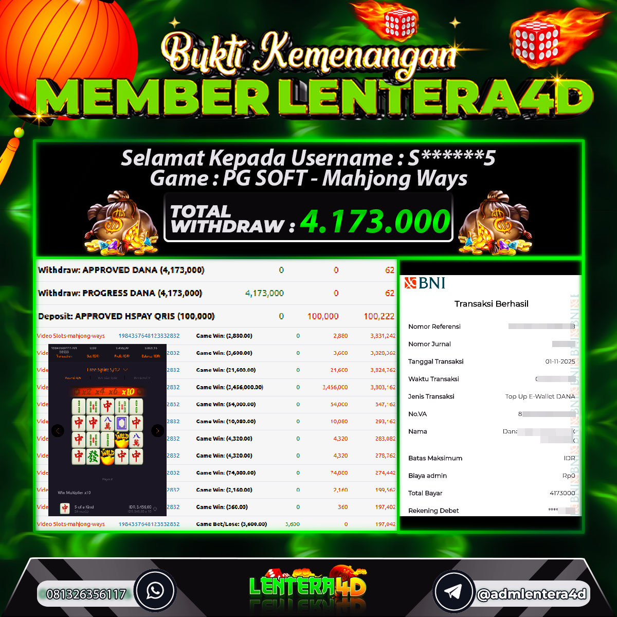 Satu lagi Bukti JP dan Pembarayan Sah Dan Dapat Dipertanggung Jawabkan, WD Berapapun Pasti Dibayar Lunas Hanya di Situs LENTERA 4D. Hati Hati Kepada Pihak Pihak Yang Mengatas namakan Pihak LENTERA4D Untuk Melakukan Penipuan.