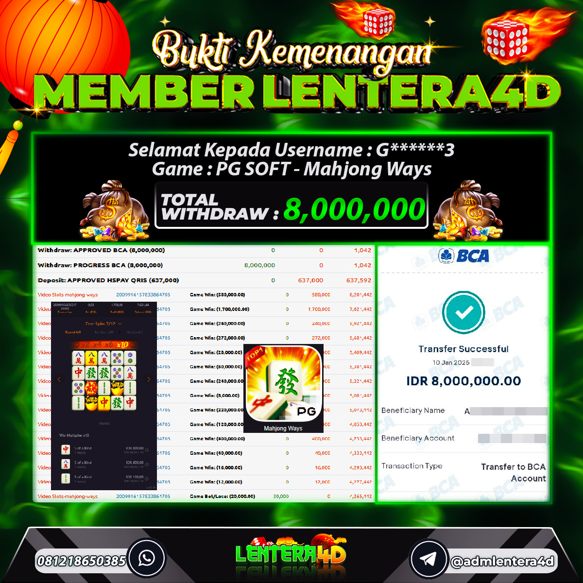 TOTAL KEMENANGAN : Rp. 8.000.000,-