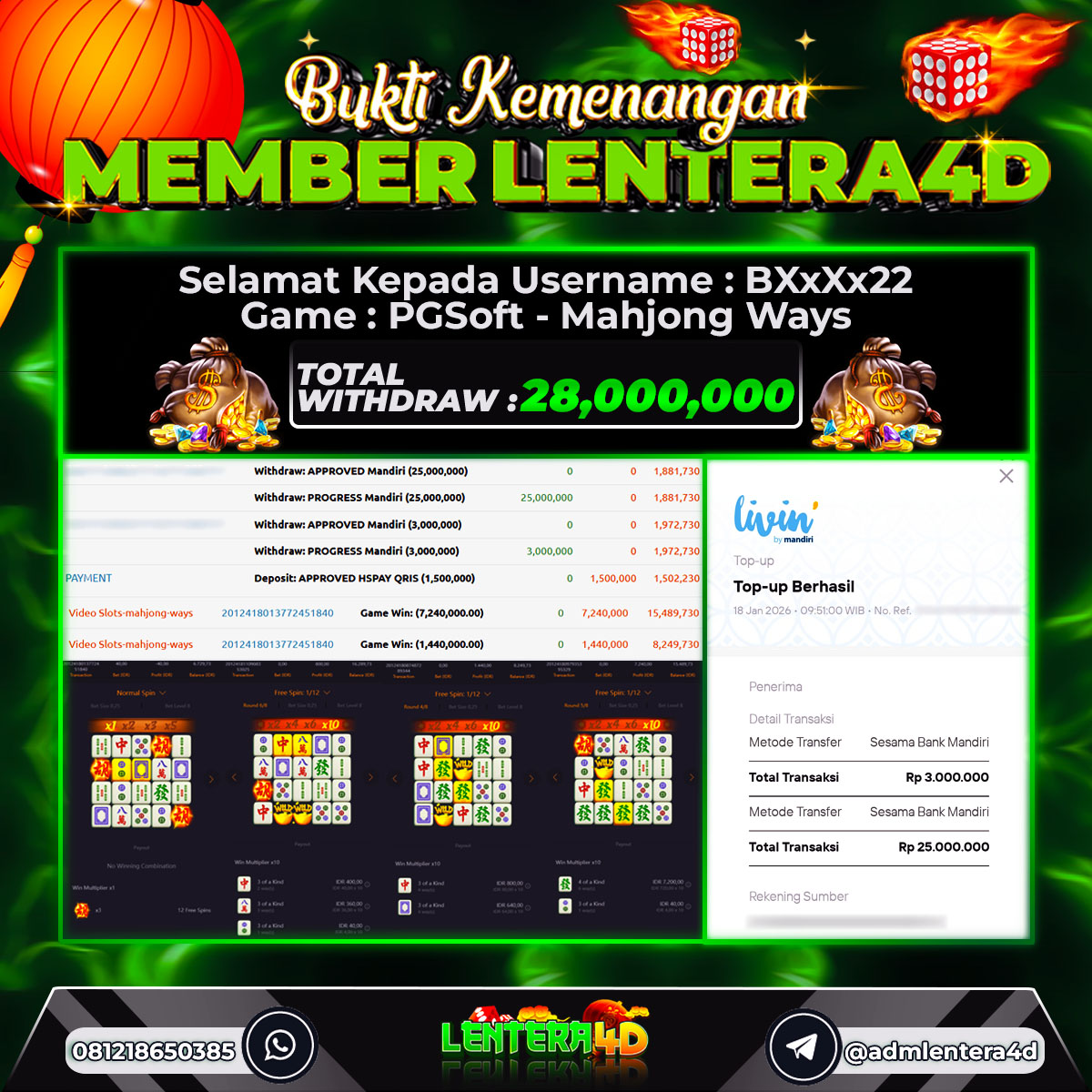 JACKPOT MAIN MAHJONG WAYS 18 JANUARI 2026, Jackpot Slot Gacor, Kemenangan Slot, Bukti Kemenangan Slot, Kemenangan Slot PG SOFT, Menang Slot online, Slot Gacor, Situs Aman Terpercaya, WD Berapapun Pasti DI Bayar Tuntas, Maxwin Slot Online.