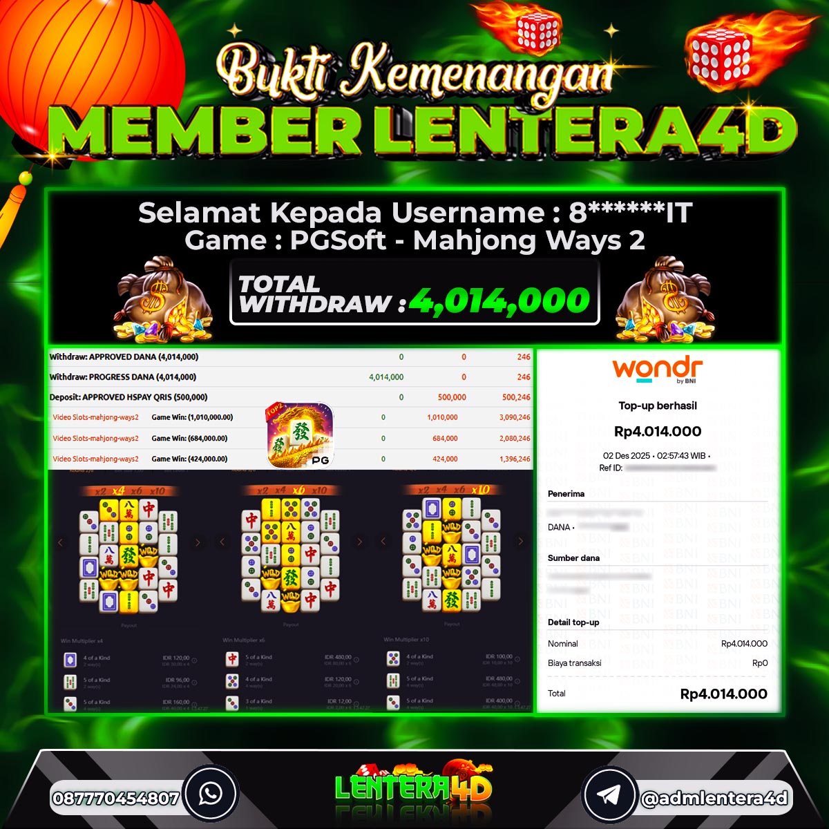JACKPOT MAIN MAHJONG WAYS 2 02 DESEMBER 2025, Jackpot Slot Gacor, Kemenangan Slot, Bukti Kemenangan Slot, Kemenangan Slot PG SOFT, Menang Slot online, Slot Gacor, Situs Aman Terpercaya, WD Berapapun Pasti DI Bayar Tuntas, Maxwin Slot Online.