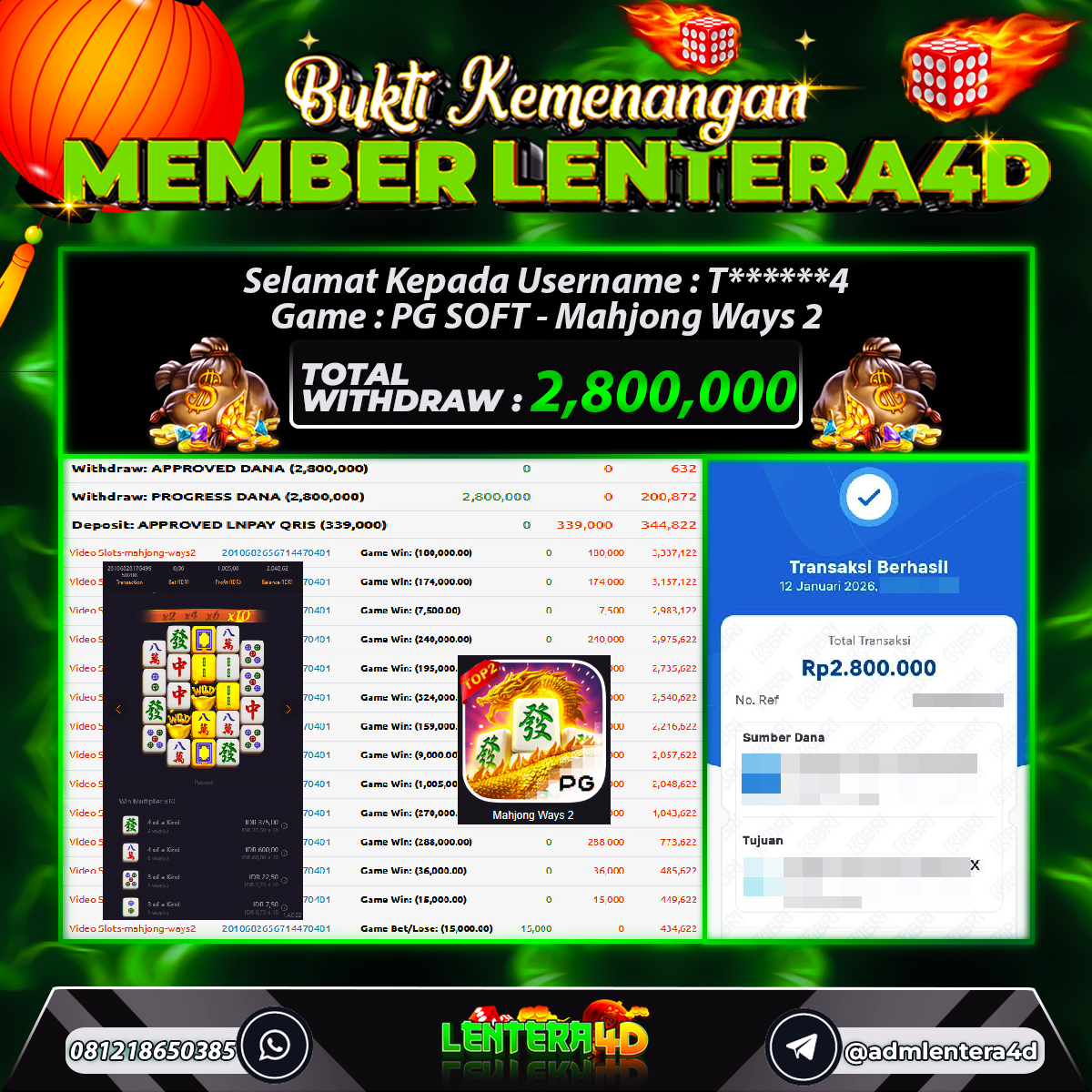 TOTAL KEMENANGAN : Rp. 2,800,000,-