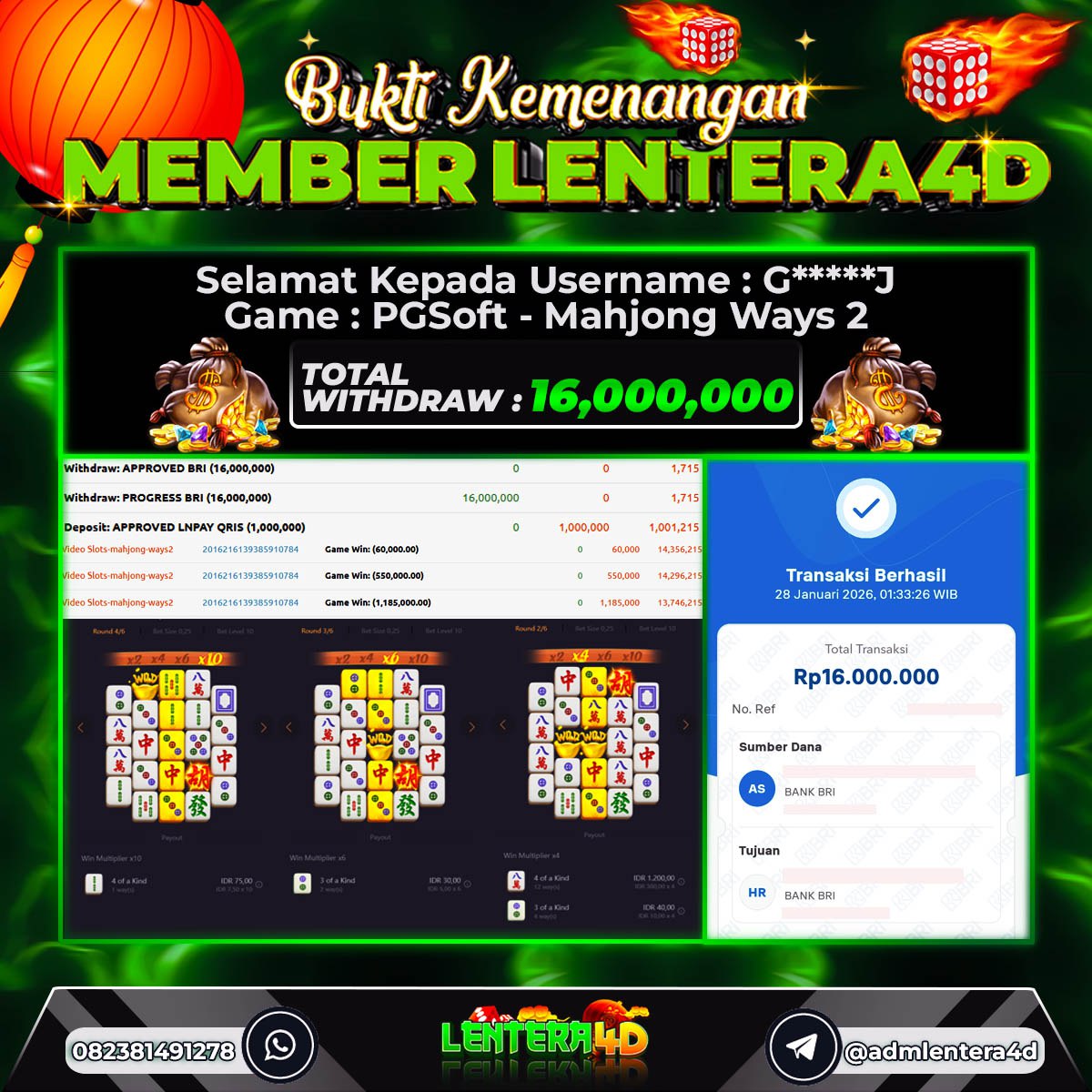 TOTAL KEMENANGAN : Rp. 16.000.000,-