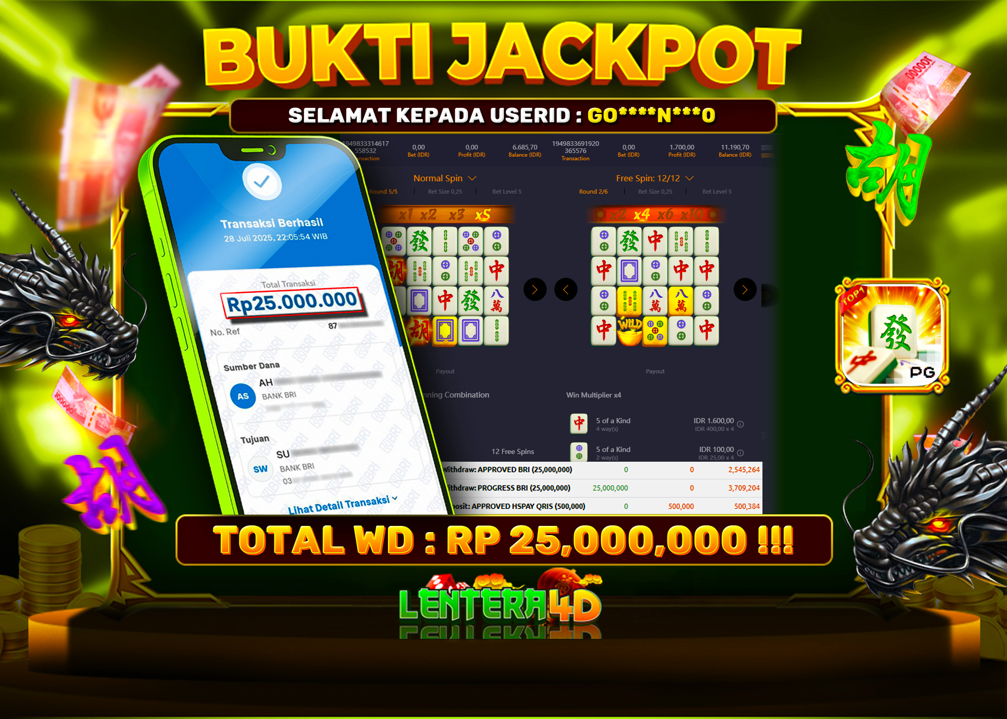 Lentera4D dikenal sebagai situs terpercaya yang selalu menghadirkan pengalaman bermain slot online yang aman, fair, dan berlisensi resmi. Di sini, kami tidak hanya sekadar memberikan janji, tapi bukti nyata berupa slip kemenangan yang dapat Anda lihat secara langsung.