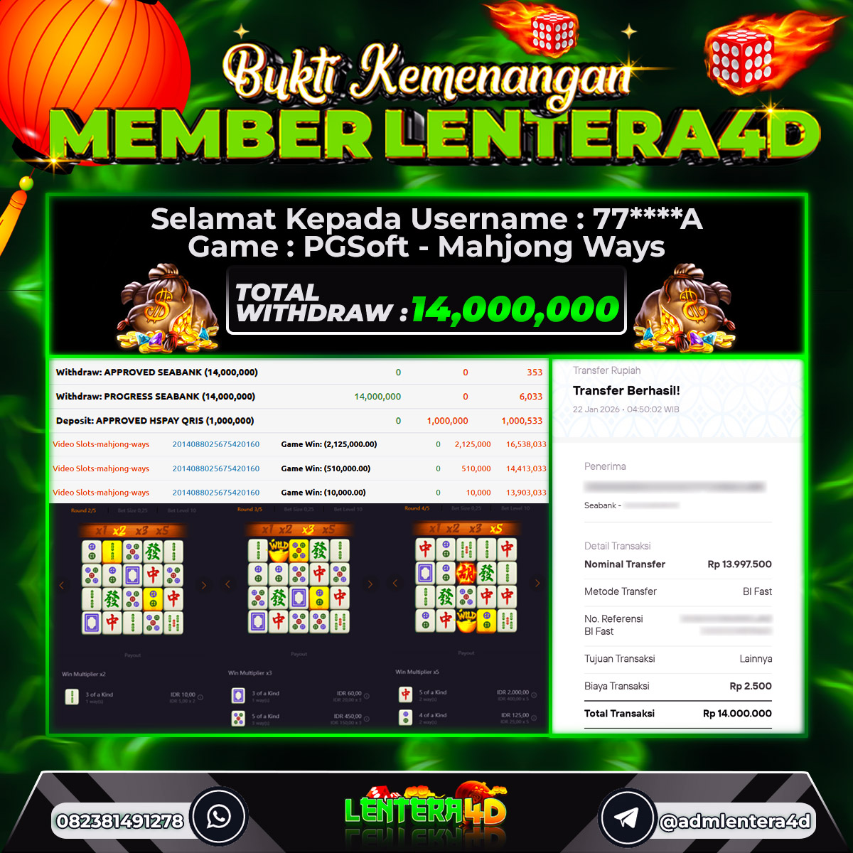 TOTAL KEMENANGAN : Rp. 14.000.000,-