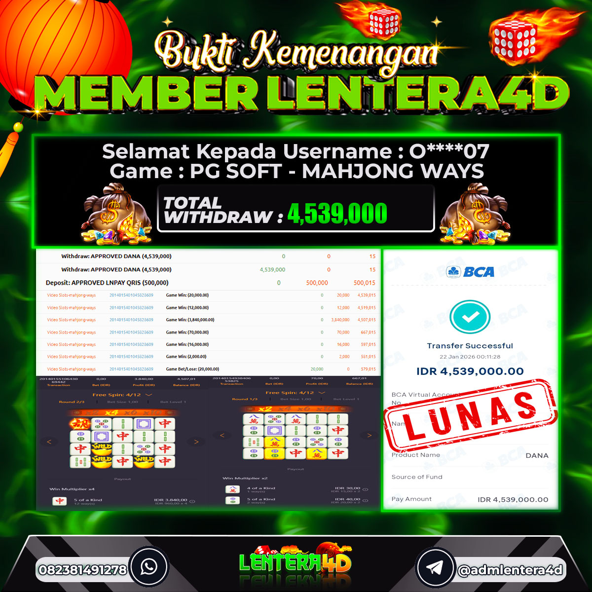 Satu lagi Bukti JP dan Pembarayan Sah Dan Dapat Dipertanggung Jawabkan, WD Berapapun Pasti Dibayar Lunas Hanya di Situs LENTERA4D. Hati Hati Kepada Pihak Pihak Yang Mengatas namakan Pihak LENTERA4D Untuk Melakukan Penipuan.