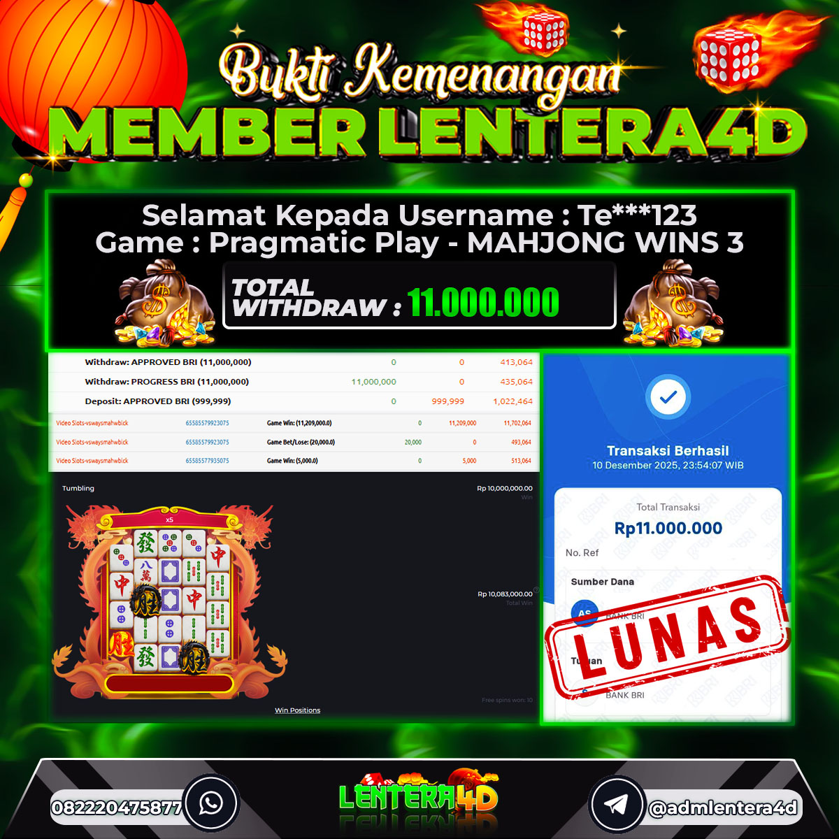 TOTAL KEMENANGAN : Rp 11.000.000,-