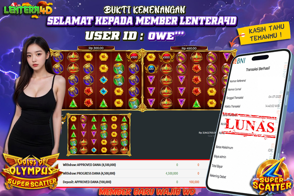 Satu lagi Bukti JP dan Pembarayan Sah Dan Dapat Dipertanggung Jawabkan, WD Berapapun Pasti Dibayar Lunas Hanya di Situs LENTERA 4D. Hati Hati Kepada Pihak Pihak Yang Mengatas namakan Pihak LENTERA4D Untuk Melakukan Penipuan.