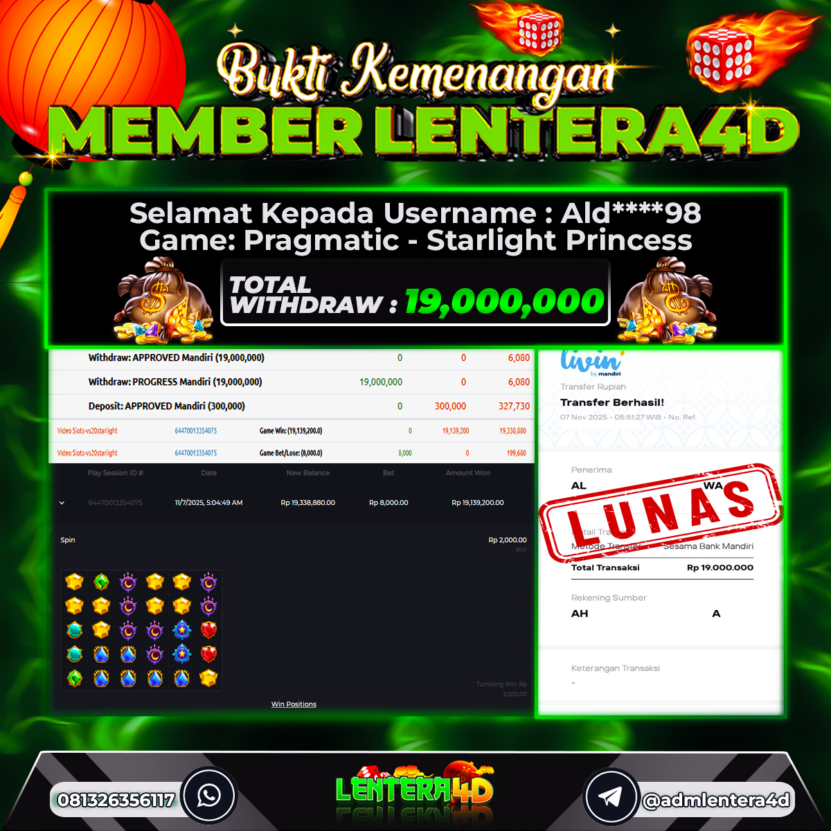 JACKPOT STARLIGHT PRINCES 07 NOVEMBER 2025, Jackpot Slot Gacor, Kemenangan Slot, Bukti Kemenangan Slot, Kemenangan Slot Pragmatic, Menang Slot online, Slot Gacor, Situs Aman Terpercaya, WD Berapapun Pasti DI Bayar Tuntas, Maxwin Slot Online.
