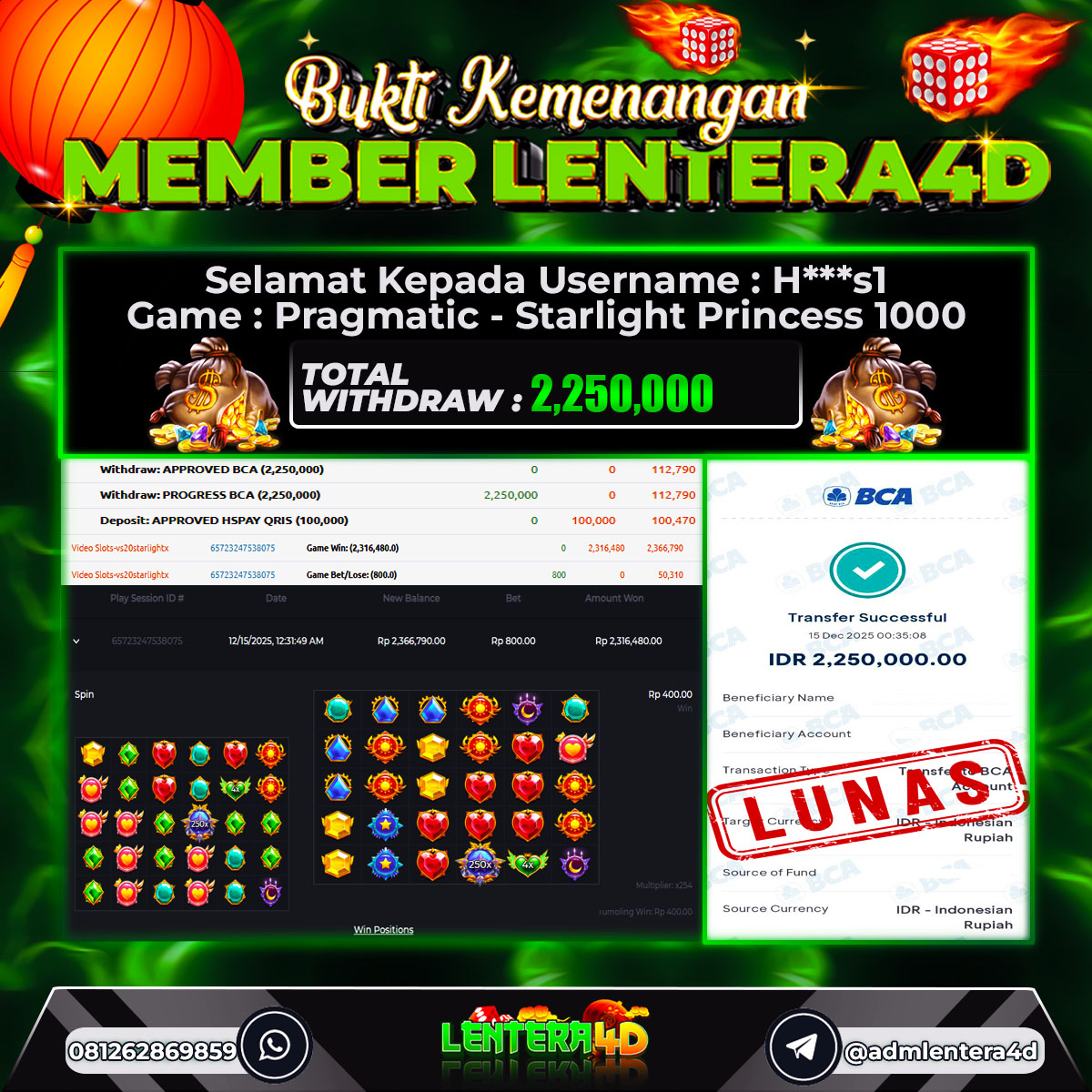 JACKPOT STARLIGHT PRINCES 1000 15 DESEMBER 2025, Jackpot Slot Gacor, Kemenangan Slot, Bukti Kemenangan Slot, Kemenangan Slot Pragmatic, Menang Slot online, Slot Gacor, Situs Aman Terpercaya, WD Berapapun Pasti DI Bayar Tuntas, Maxwin Slot Online.
