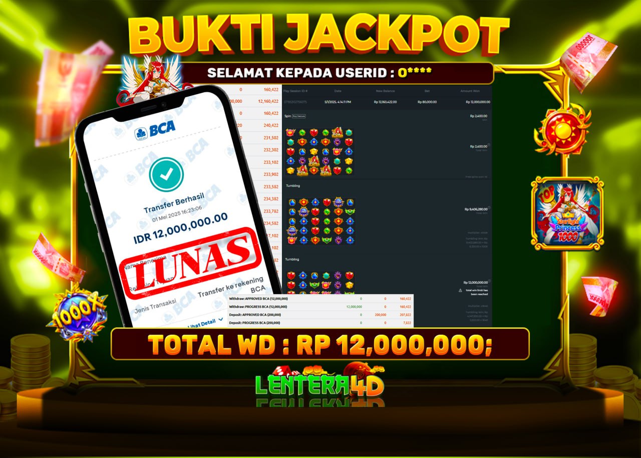 Satu lagi Bukti JP dan Pembarayan Sah Dan Dapat Dipertanggung Jawabkan, WD Berapapun Pasti Dibayar Lunas Hanya di Situs LENTERA4D. Hati Hati Kepada Pihak Pihak Yang Mengatas namakan Pihak LENTERA4D Untuk Melakukan Penipuan.