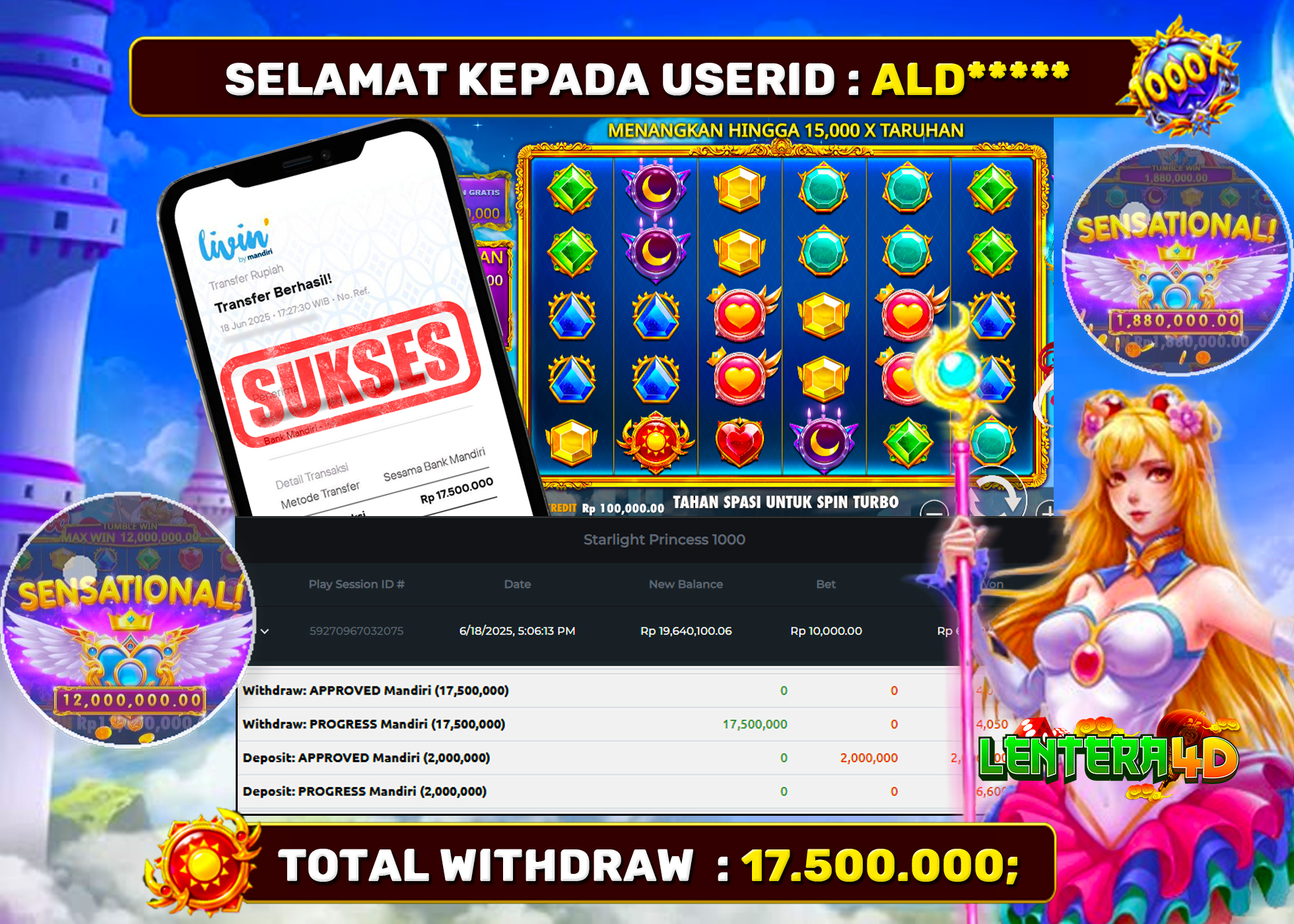 JACKPOT STARLIGHT PRINCESS 1000 18 JUNI 2025