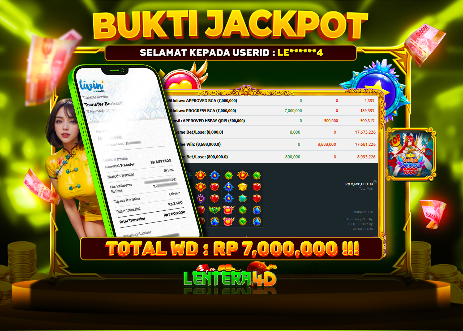 Setiap hari, member Lentera4D berhasil meraih jackpot besar dari berbagai provider slot ternama yang kami sediakan, seperti Pragmatic Play, Habanero, PG Soft, dan masih banyak lagi. Kami secara rutin menampilkan bukti screenshot atau rekapan kemenangan yang berhasil diraih, mulai dari kemenangan ratusan ribu hingga puluhan juta rupiah. Semua slip kemenangan ini kami hadirkan untuk membuktikan bahwa di Lentera4D, peluang menang itu nyata.