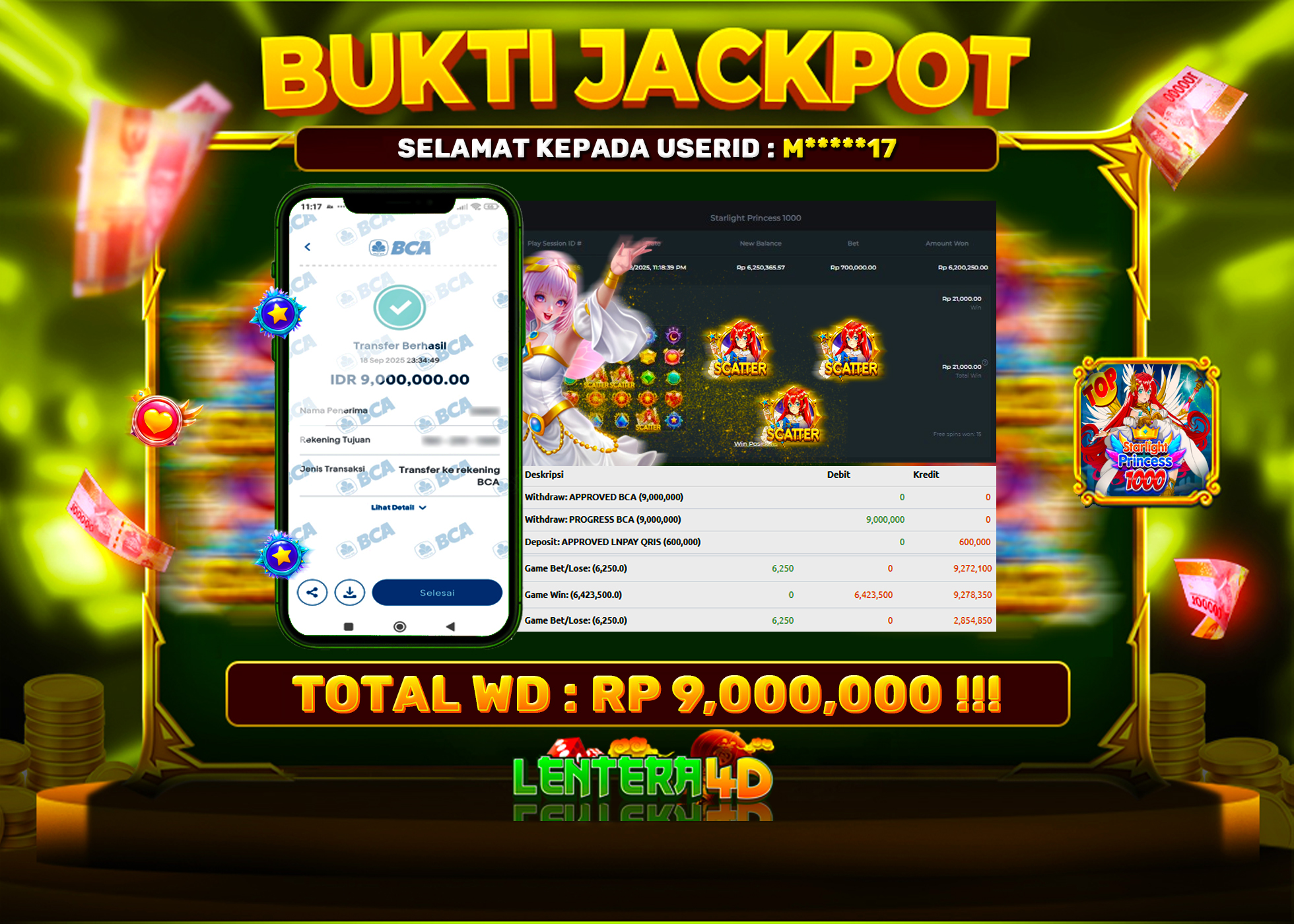 Setiap hari, member Lentera4D berhasil meraih jackpot besar dari berbagai provider slot ternama yang kami sediakan, seperti Pragmatic Play, Habanero, PG Soft, dan masih banyak lagi. Kami secara rutin menampilkan bukti screenshot atau rekapan kemenangan yang berhasil diraih, mulai dari kemenangan ratusan ribu hingga puluhan juta rupiah. Semua slip kemenangan ini kami hadirkan untuk membuktikan bahwa di Lentera4D, peluang menang itu nyata.
