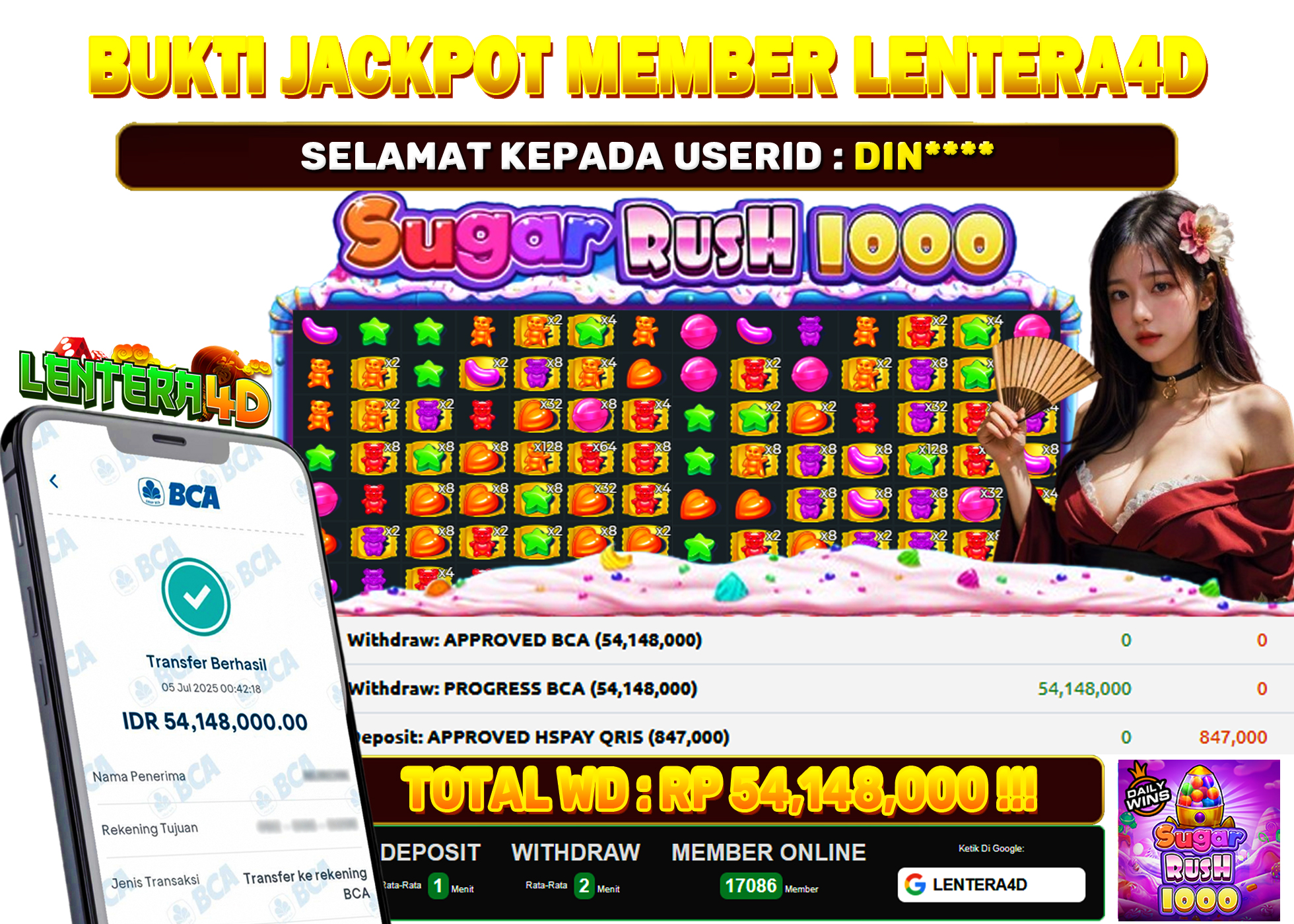 Setiap hari, member Lentera4D berhasil meraih jackpot besar dari berbagai provider slot ternama yang kami sediakan, seperti Pragmatic Play, Habanero, PG Soft, dan masih banyak lagi. Kami secara rutin menampilkan bukti screenshot atau rekapan kemenangan yang berhasil diraih, mulai dari kemenangan ratusan ribu hingga puluhan juta rupiah. Semua slip kemenangan ini kami hadirkan untuk membuktikan bahwa di Lentera4D, peluang menang itu nyata.