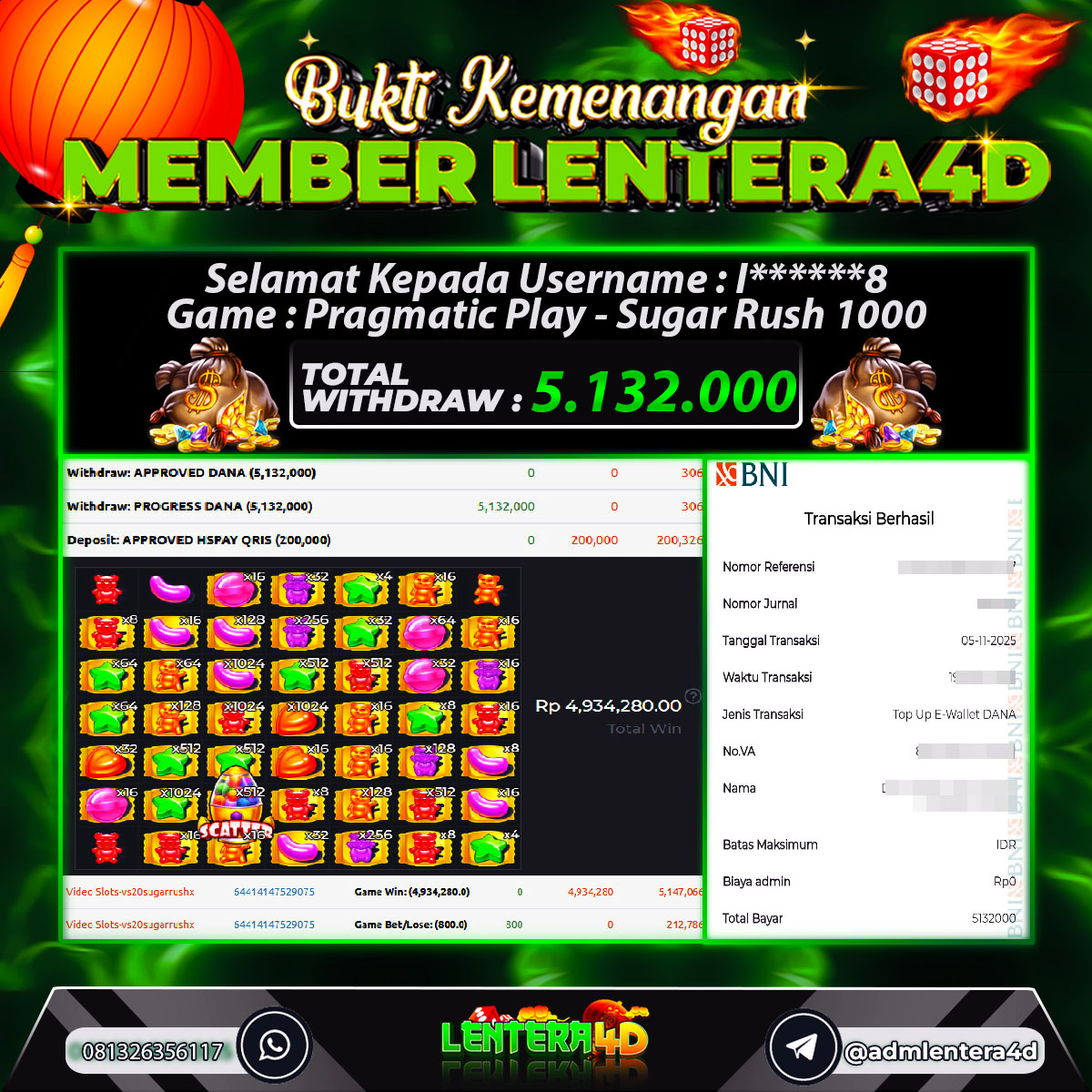 TOTAL KEMENANGAN : Rp. 5.132.000,-