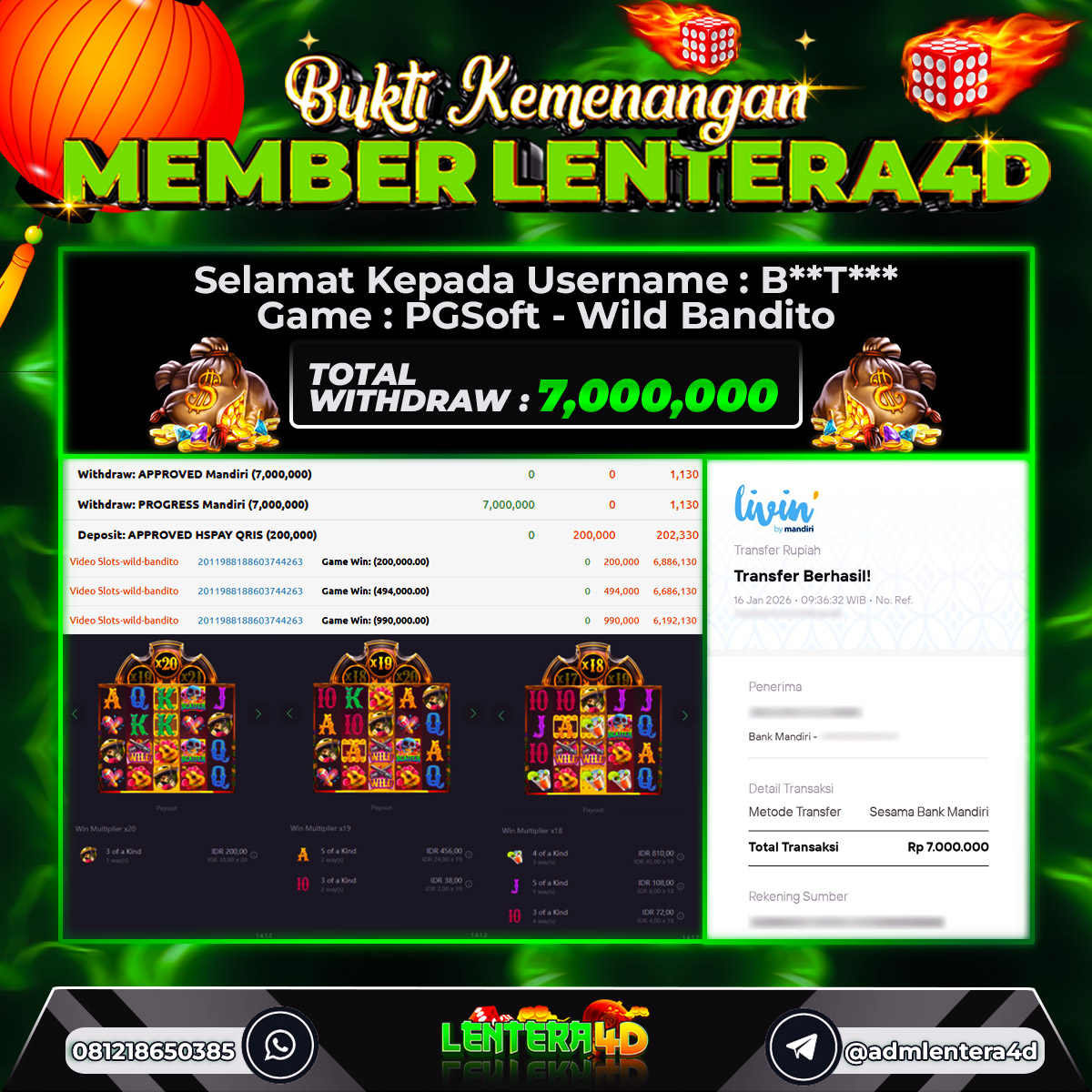 JACKPOT MAIN WILD BANDITO 16 JANUARI 2025