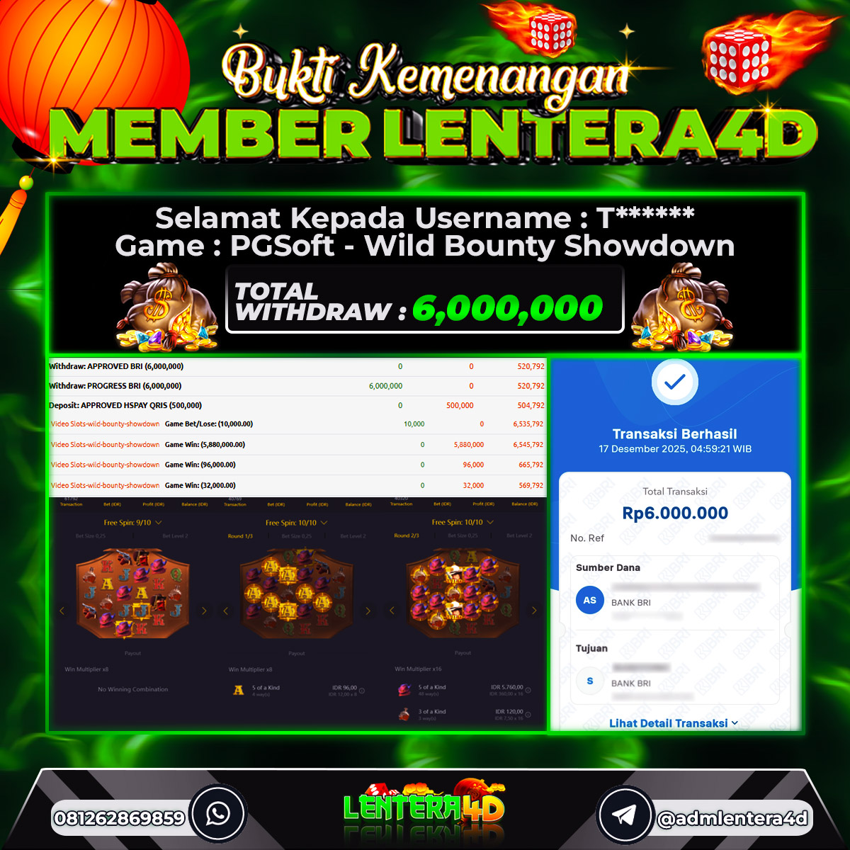 JACKPOT MAIN WILD BOUNTY SHOWDOWN 17 DESEMBER 2025, Jackpot Slot Gacor, Kemenangan Slot, Bukti Kemenangan Slot, Kemenangan Slot PG SOFT, Menang Slot online, Slot Gacor, Situs Aman Terpercaya, WD Berapapun Pasti DI Bayar Tuntas, Maxwin Slot Online.