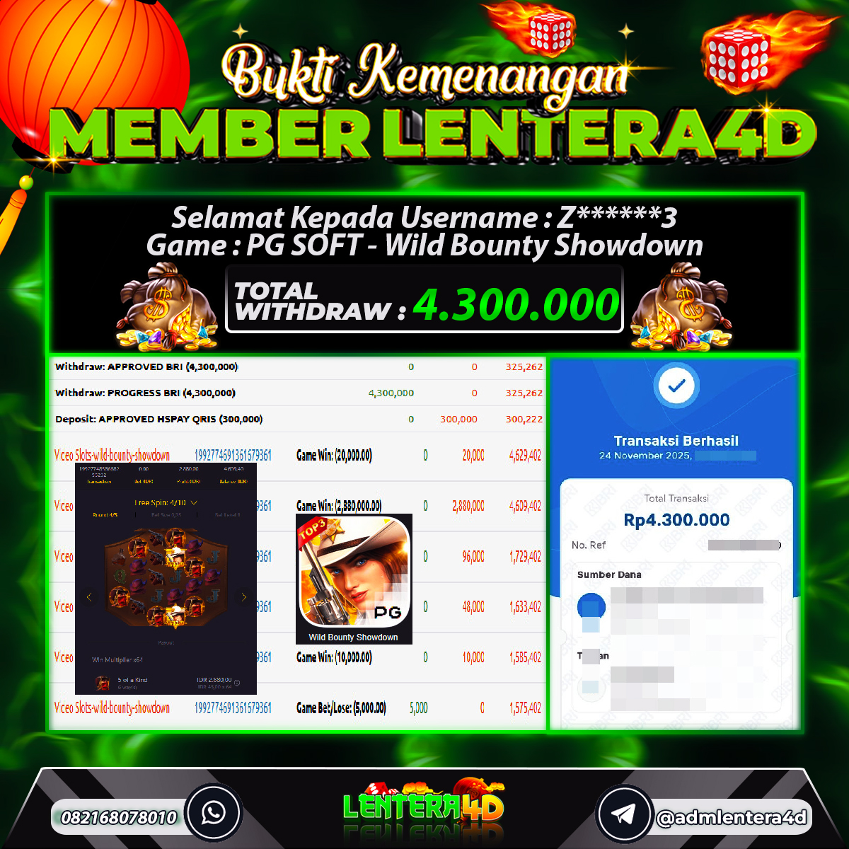 JACKPOT MAIN WILD BOUNTY SHOWDOWN 24 NOVEMBER 2025, Jackpot Slot Gacor, Kemenangan Slot, Bukti Kemenangan Slot, Kemenangan Slot PG SOFT, Menang Slot online, Slot Gacor, Situs Aman Terpercaya, WD Berapapun Pasti DI Bayar Tuntas, Maxwin Slot Online.